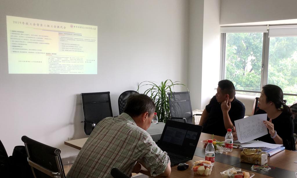 2019年6月26日,校工会副主席赵晓燕等3位老师来我院督查二级教代会的实施情况,并在302室召开汇报会。我院工会副主席刘峰、陈忠英,工会委员刘晶、校代表胡明忠老师出席会议。