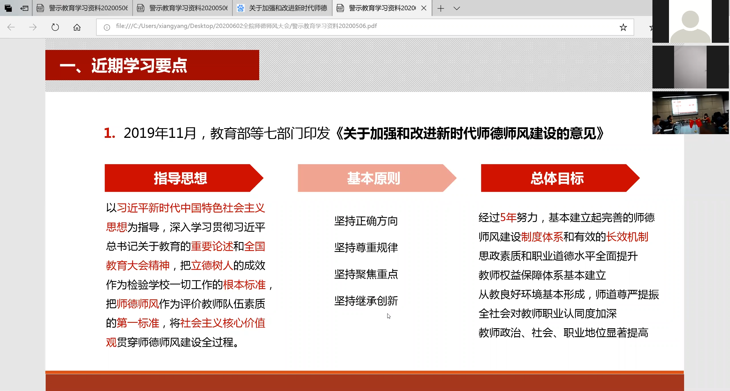 2020年6月2日下午1:30,电信学院以ZOOM视频会议形式召开了全院师德师风警示教育专题大会,会议由学院董变林副书记主持,向阳书记向学院全体教职工传达并解读师德师风警示教育相关内容。学院306名在职教职工通过网络参加了会议。