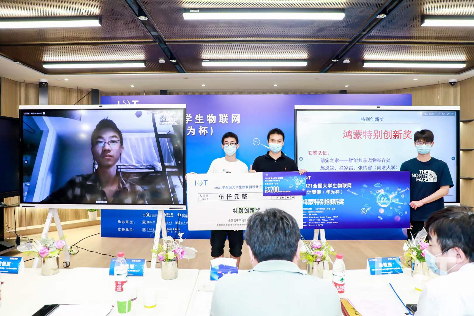 竞赛由全国高等学校计算机教育研究会主办,上海交通大学承办,华为技术有限公司协办,并得到中国电信天翼物联、中国移动中移物联网、霍尼韦尔Tridium、CSA联盟、新大陆、德州仪器 (TI)、百度、机械工业出版社华章公司等重量级合作伙伴的鼎力支持。本次竞赛共有来自上海交通大学、南京大学、武汉大学、哈尔滨工业大学、西安交通大学、同济大学等571所高校的6945名学生和1461名指导教师组成1475支队伍参赛,经过五个分赛区的网络评审、线上决赛,最终有145支队伍进入全国总决赛。竞赛采用参赛队线上答辩、专家线下和线上混合评审的方式进行,参加评审的评委均为来自行业著名企业和高校相关领域的专家,每支参赛队伍都需经历项目答辩、实物演示以及专家质询三个环节。
