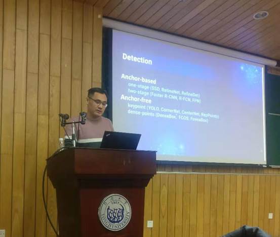 胡国圣博士的报告题目是“人脸识别:从学术界到工业界”。人脸识别是一种用途广泛的计算机视觉技术,近年来已取得了显著的研究进展,受到了学术界与工业界的广泛关注。报告从人脸识别的基本概念入手,介绍了人脸检测模块,特征点自动标注模块,及人脸识别模块。胡博士分析了上述三大模块的研究热点的变迁,详细介绍三大模块的当前研究热点及难点。最后,胡博士介绍了人脸识别技术在国内外的应用情况,对本领域的发展趋势做出预测和展望,并在现场与一些同学进行了关于人脸识别技术安全性的探讨。报告的内容丰富,讲解详细,不仅让同学们开阔了视野,还收获了不少“干货”,对今后的学术视角和科研工作都有很大的启发和指导作用。