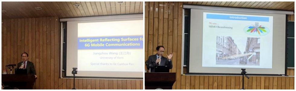 王江舟教授主要研究的是如何将智能反射面更好的应用在5G和6G移动通信中,作了题为《智能反射面应用于6G移动通信》的讲座。目前,5G无线网络已实现了1000倍网络容量增加和至少1000亿个设备的普遍无线连接目标。虽然5G物理层技术通常能够适应空间和时间变化的无线环境,但信号传播本质上是随机的,在很大程度上是不可控制的。基于上述原因,智能反射面被认为是一种很有前途的新技术,可以通过软件控制反射来重新配置无线传播环境。具体地说,智能反射面是一种由大量低成本的被动无源反射元件组成的平面,放置于基站与用户(发送方与接收方之间)。由于每个元件能都能够独立地对入射信号进行相位或幅度的改变,因此可以利用智能反射面,使得用户更好地接收基站发送的信号,这在实际的一些应用中将发挥重要的作用。
