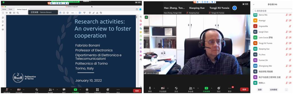 1月10日,学院开展的第17期智·信讲堂通过ZOOM平台线上举行,意大利都灵理工大学电子与电信系教授Fabrizio Bonani受邀作“Research activities: An overview to foster cooperation”的主题报告。学院副院长张皓教授主持本次讲堂。