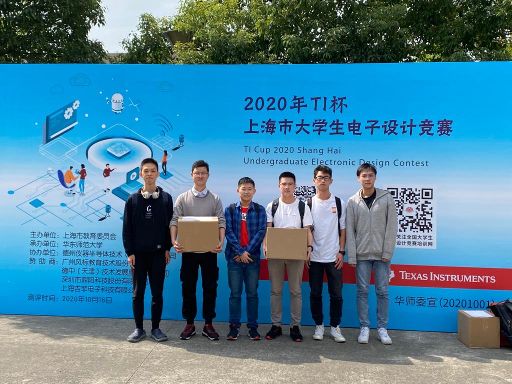 2020年10月18日, 2020年上海市大学生电子设计竞赛(TI杯)获奖名单公布。我校参赛队取得了一等奖2队,二等奖3队,三等奖5队的优异成绩,另有5队获得成功参赛奖。本次我院组织,在全校范围内选拔出15队45名同学参赛。参赛同学经过10月10日至10月13日四天三夜的紧张设计制作,于10月14日进行了初评,并遴选出3支优秀代表队于10月18日前往华东师范大学参加全市评测。