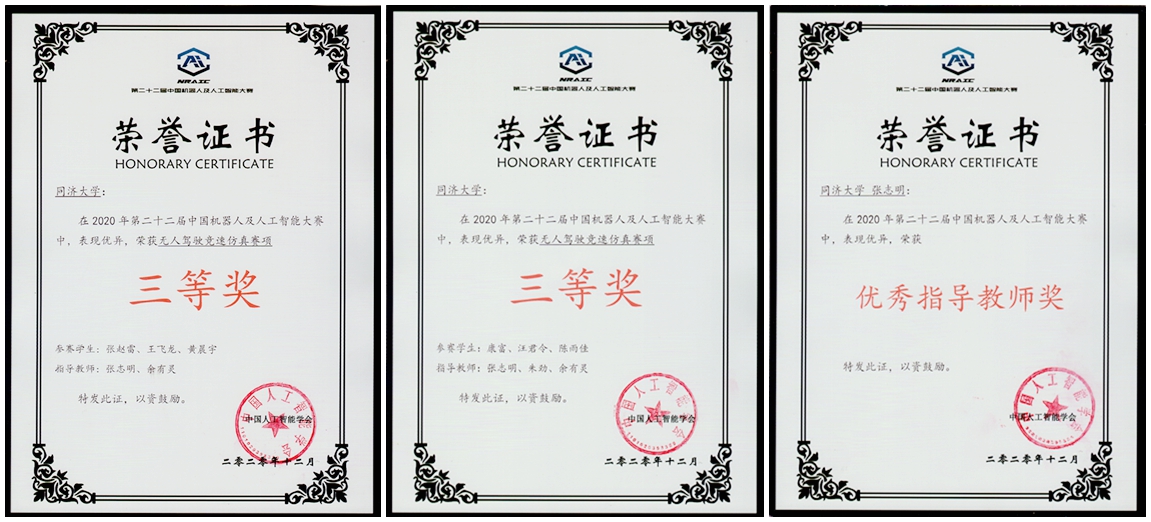日前,全国大学生智能汽车竞赛实验室先后收到来自中国机器人及人工智能大赛、中国智能机器人格斗大赛的多张获奖证书。